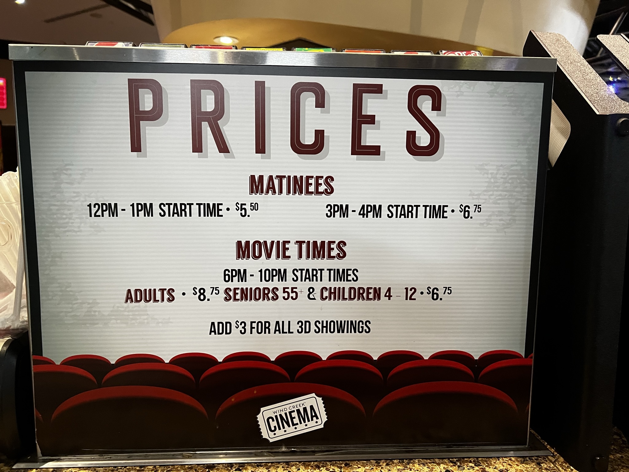 Hubs and I celebrated our 11 year wedding anniversary; May 26th by heading to Wind Creek casino for dinner and a movie. I believe we paid $40 per person for the buffet.