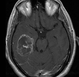The following morning after running more tests, it was confirmed that he had brain cancer. Glioblastoma Multiforme Grade 4 to be exact. The circle to the left is the tumor.